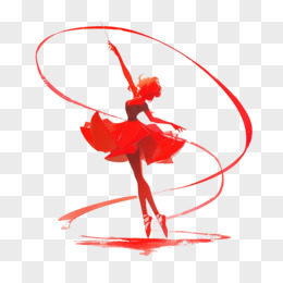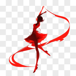卡通风红色短裙芭蕾舞者飘带剪影免抠元素