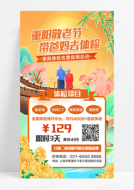 检橘色国潮重阳敬老节带爸妈去体检老年体体检海报设计