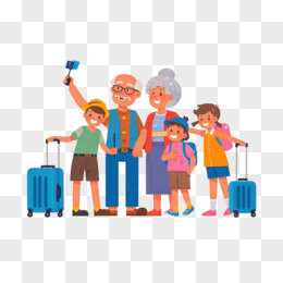 一家人出发老年人旅行q版儿童插画可爱免抠元素