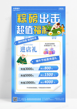 蓝色简约棕磅出击超值福利端午节促销手机宣传海报