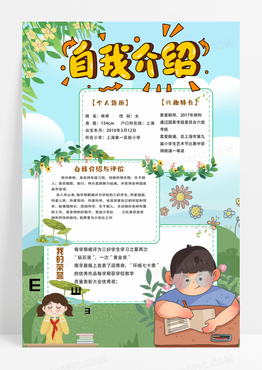 绿色卡通我的简历班干部竞选自我介绍海报设计