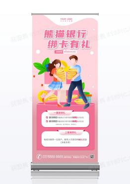 粉色银行卡绑定手机礼品城市建筑粉色展架