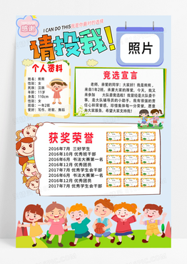 卡通简约我最棒请投我我要参加大队委竞选小学生竞选海报