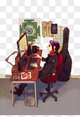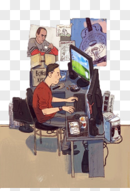 手绘玩电脑的人物