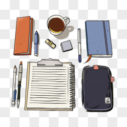 卡通插画风办公用品文具笔记本免抠元素
