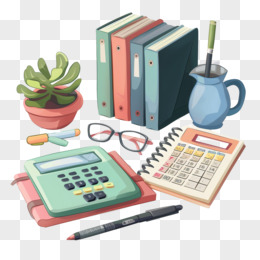 卡通插画风办公用品文具计算器免抠元素