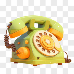 3D素材办公用品黄色电话机免抠元素