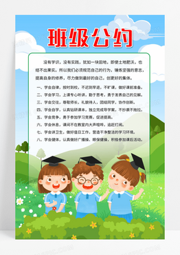 班级文明公约蓝色卡通人物形象班级公约学识实践班集体展板