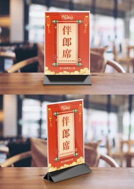 喜庆婚礼桌卡伴郎席座位牌竖桌签