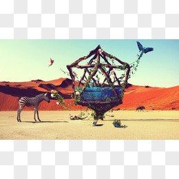 卡通水彩动漫风吃草食草动物斑马免抠元素