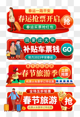 一组春运春节抢票胶囊入口图胶囊banner素材