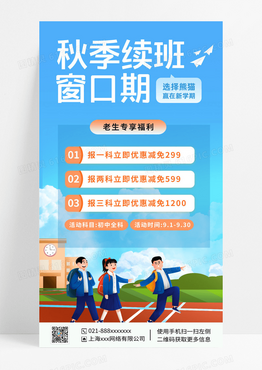 创意插画秋季续班窗口期招生促销课程优惠手机海报