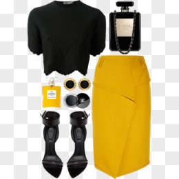 黑色上衣和黄色半身裙