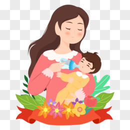 手绘母亲哺喂婴儿鲜花组合免抠元素