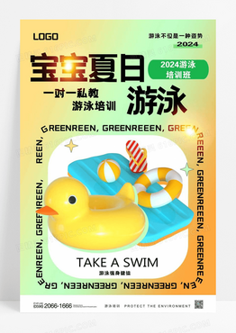 简约背景宝宝夏日游泳创意海报设计