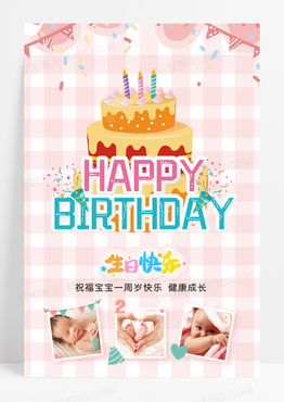 粉色宝宝生日宴一周岁生日海报