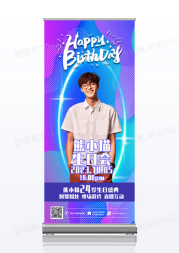 紫色渐变明星偶像生日会应援邀请宣传易拉宝