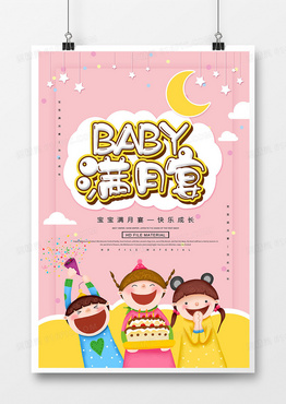 卡通创意宝贝满月宴宣传海报