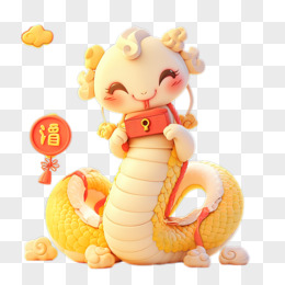 蛇年幸运财宝蛇卡通形象3D免抠元素