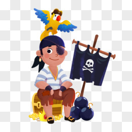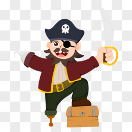 卡通手绘断腿海盗找到宝藏免抠素材