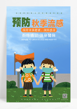 预防绿色矢量卡通预防秋季流感保持健康预防感冒宣传海报秋季疾病预防
