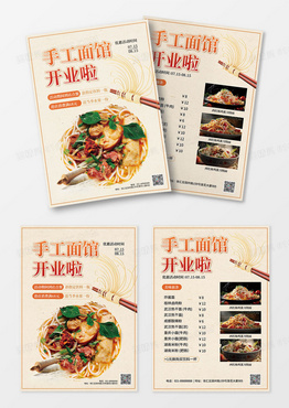 浅色手工面馆特色美食面食菜单宣传海报单页