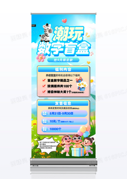 蓝天草地清新3D风潮玩盲盒促销展架盲盒潮玩