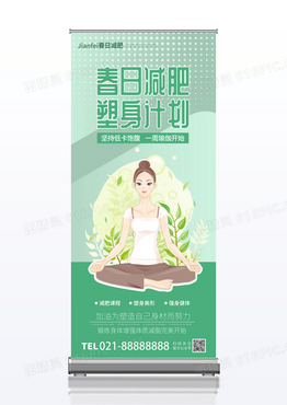 简约清新薄荷绿瑜伽健身减肥塑身创意展架易拉宝海报设计