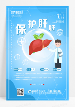 蓝色剪纸风世界肝炎日保护肝脏宣传海报设计