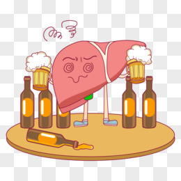 手绘卡通喝酒伤肝宣传插画免抠元素