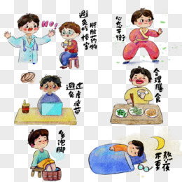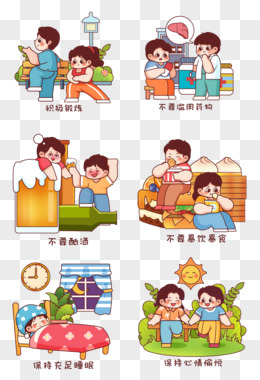 手绘卡通吃高脂肪食物伤肝宣传插画免抠元素