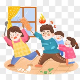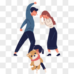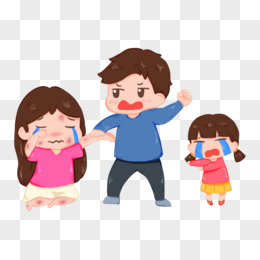 手绘卡通爸爸打妈妈孩子哭插画免抠元素