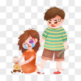 卡通手绘男人家暴孩子痛哭元素