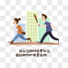 一组卡通手绘宣传女性自我保护套图之认怂逃跑元素