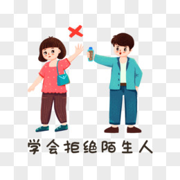 一组卡通手绘宣传女性自我保护套图之拒绝陌生人元素