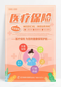 橙色简约医疗保险为您的健康保驾护航医疗保障海报