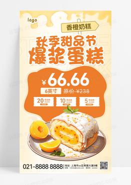 秋季甜品节爆浆蛋糕美食促销宣传海报