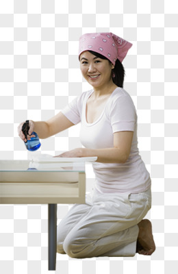 卡通手绘免抠打扫卫生的家庭妇女素材
