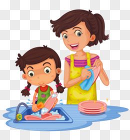 卡通手绘免抠做清洁的阿姨素材