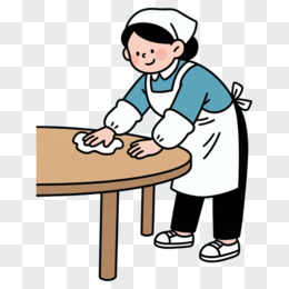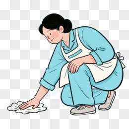 手绘插画保洁阿姨擦桌子打扫卫生免抠素材