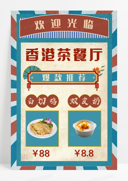 红色复古风香港茶餐厅爆款推荐美食菜单海报设计