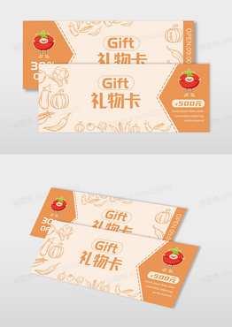橙色简约卡通蔬菜礼物卡礼品券模板