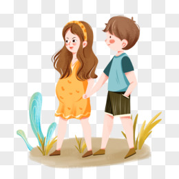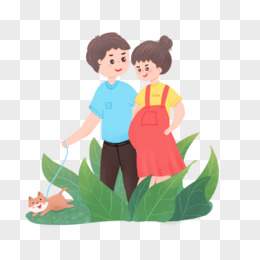 卡通手绘幸福温馨准爸陪伴准妈孕妇免抠元素