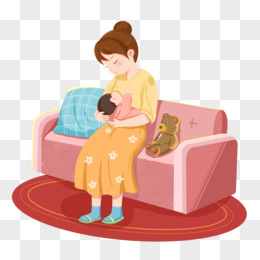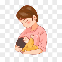 手绘母亲哺喂婴儿鲜花组合免抠元素