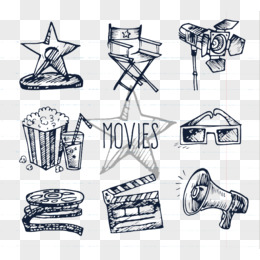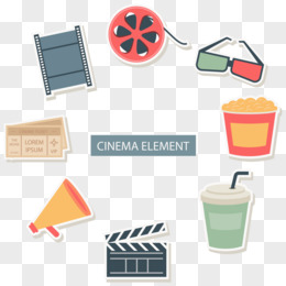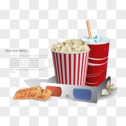电影 爆米花 可乐 电影打板 矢量图 彩带