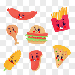 一组手绘矢量食物表情包合集素材