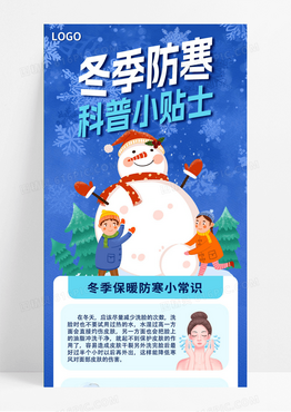 蓝色卡通雪人冬季防寒科普小贴士冬天保暖小常识手机ui长图