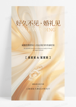 金色浪漫玫瑰薄纱婚礼邀请函婚礼请柬
