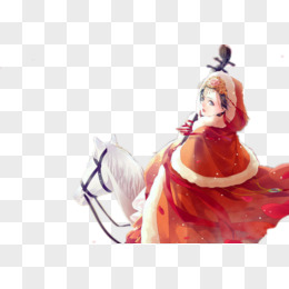 手绘女孩抱着饺子啃免抠素材