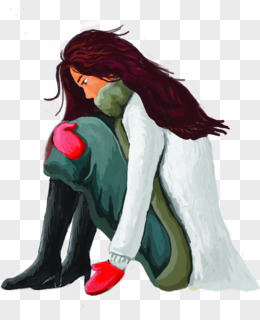 卡通长发美女抱膝手绘